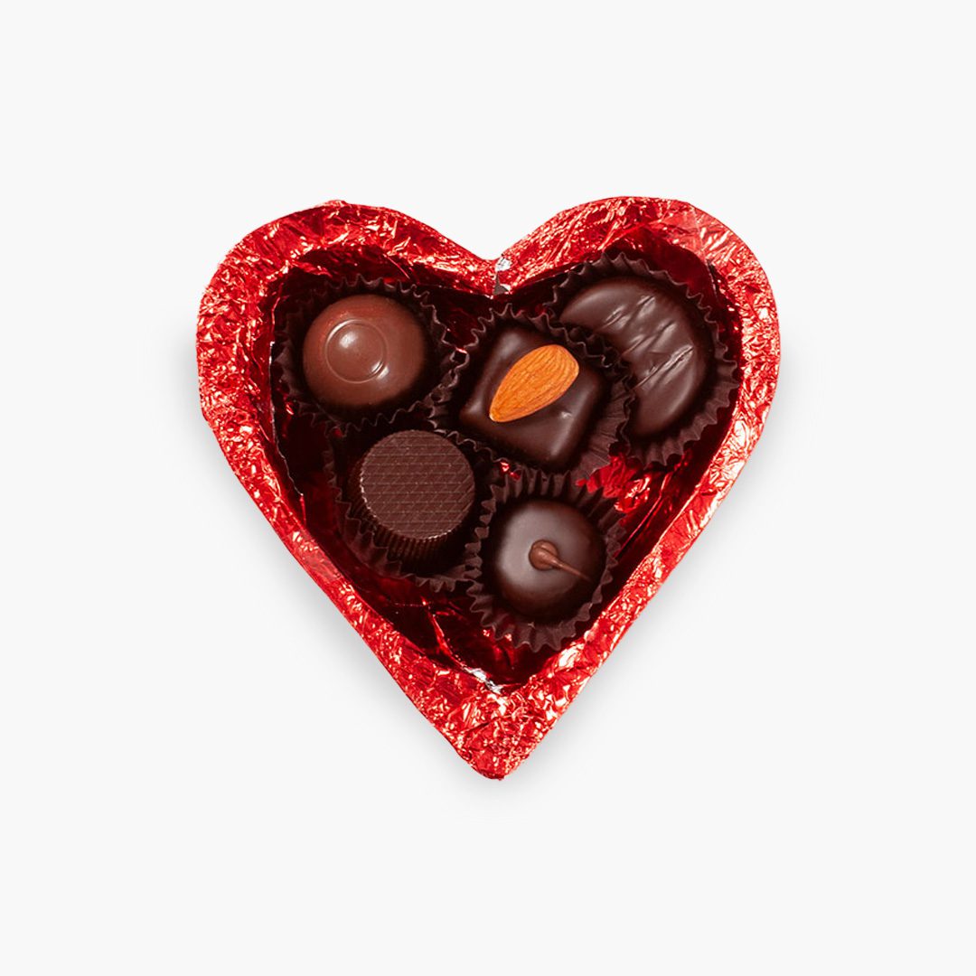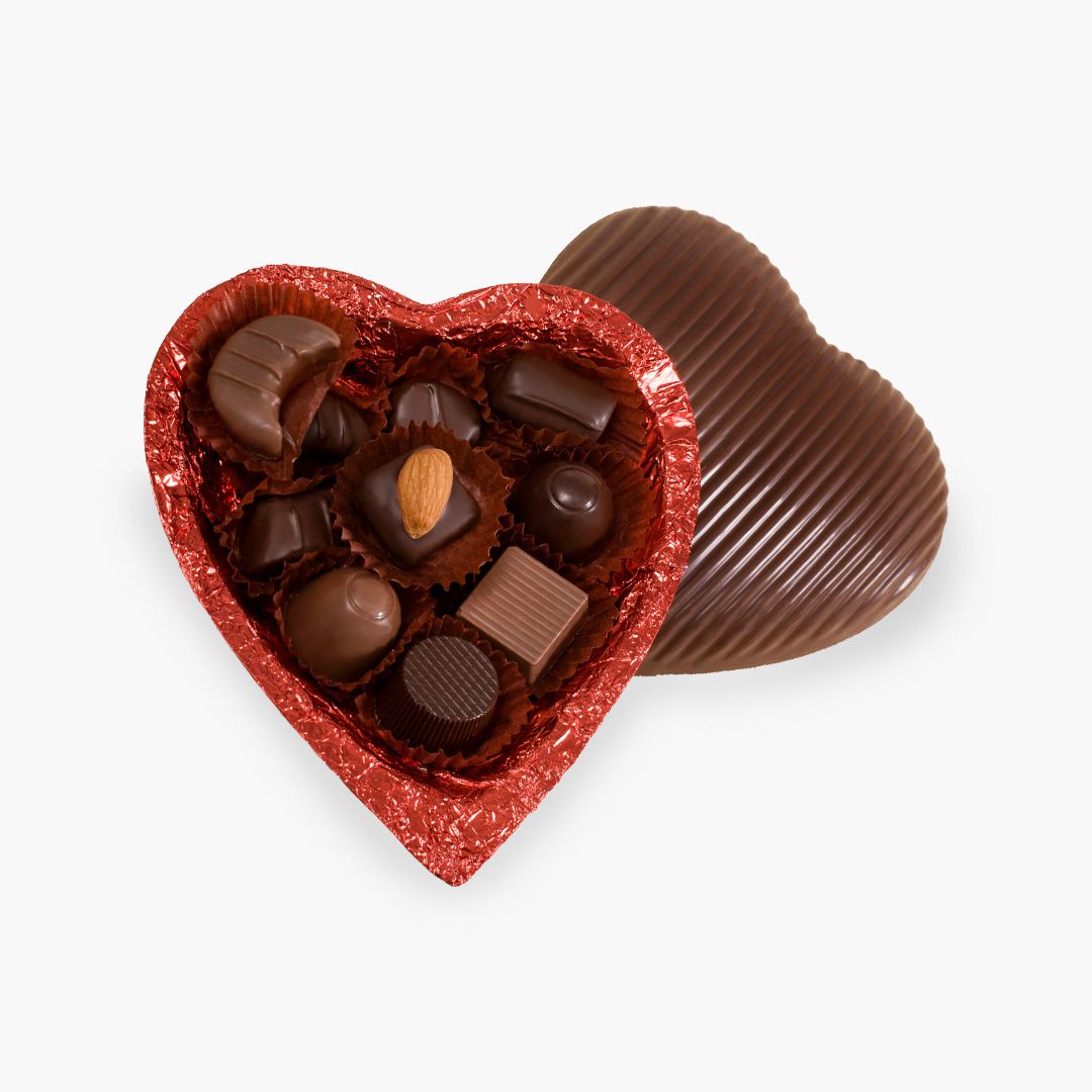 Dos tapas de chocolate con bombones surtidos dentro.
